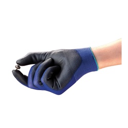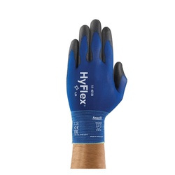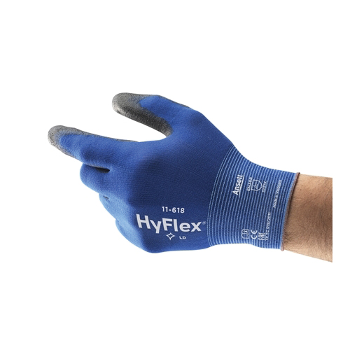 HyFlex® 288600 11-618 Light Duty General Purpose Gloves, Coated/Multi-Purpose, Smooth/Hand Specific/Full Thumb Style, SZ 9, Polyurethane Palm, Black/Blue, Knit Wrist Cuff, Polyurethane Coating, Resists: Abrasion, 18 ga Nylon Lining