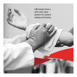 • • WypAll* L40 towels, in the center pull format, feature unique base sheet technology which creates an absorbent, sponge-like inner layer, with a soft, touchable outer layer