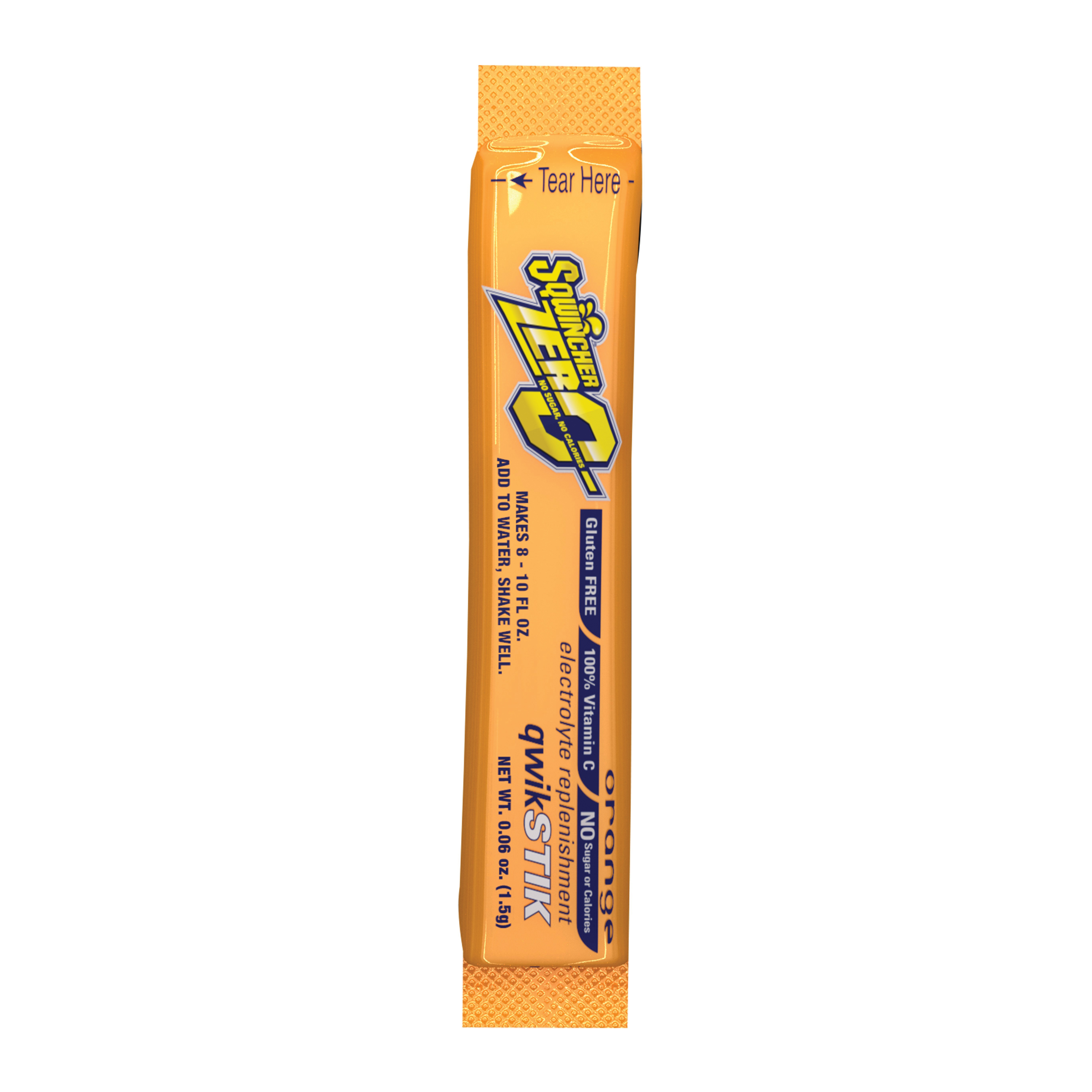 Sqwincher® 060200-OR Qwik Stik™ ZERO Single Serve Sports Drink Mix, 0.06 oz Pack, 10 oz Yield, Powder Form, Orange