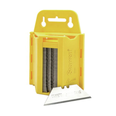 • • The Starrett® SB-100D dispenser safely houses and dispenses 100 trapezoidal high carbon steel blades