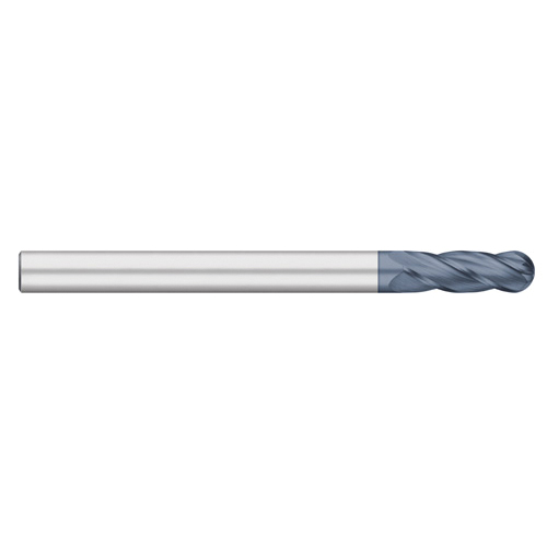 Titan USA TC18616 Ball Nose Extra Long Length Single End End Mill With Internal Coolant, 1/4 in Dia Cutter, 1-1/2 in Length of Cut, 4 Flutes, 1/4 in Dia Shank, 4 in OAL, AlTiN Coated