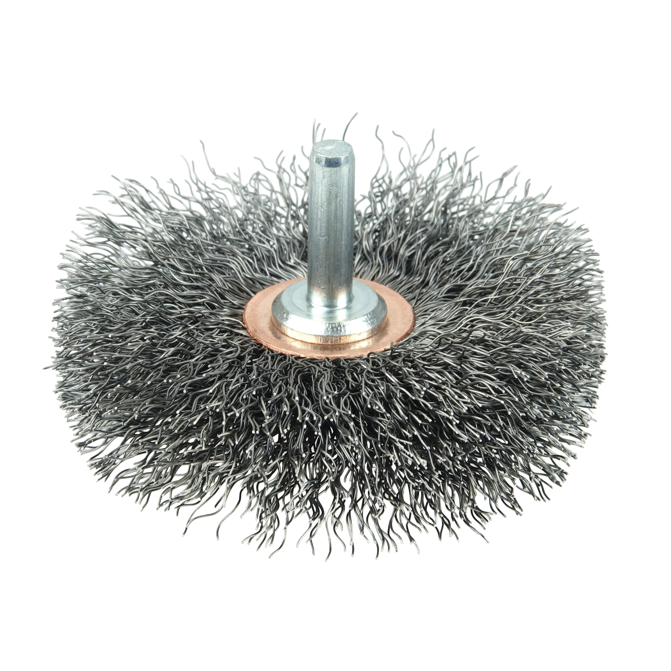 • • Small diameter copper center wheels permanently mounted onto a 1/4 in stem to provide a very flexible brushing action