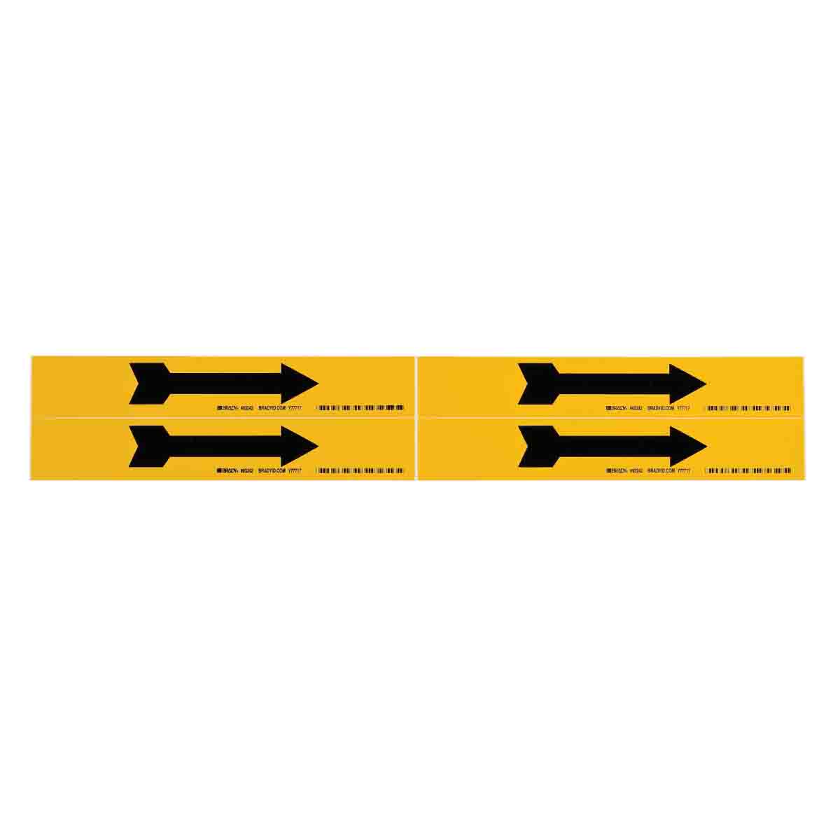 Brady® 93242 4 Style Permanent Acrylic Pipe Marker, Left/Right Arrow Symbol Legend, Black on Yellow, Fits Pipe Dia: 1 to 2-1/2 in, 1-1/8 in H x 7 in W, B-946 Vinyl, Self-Adhesive Mount