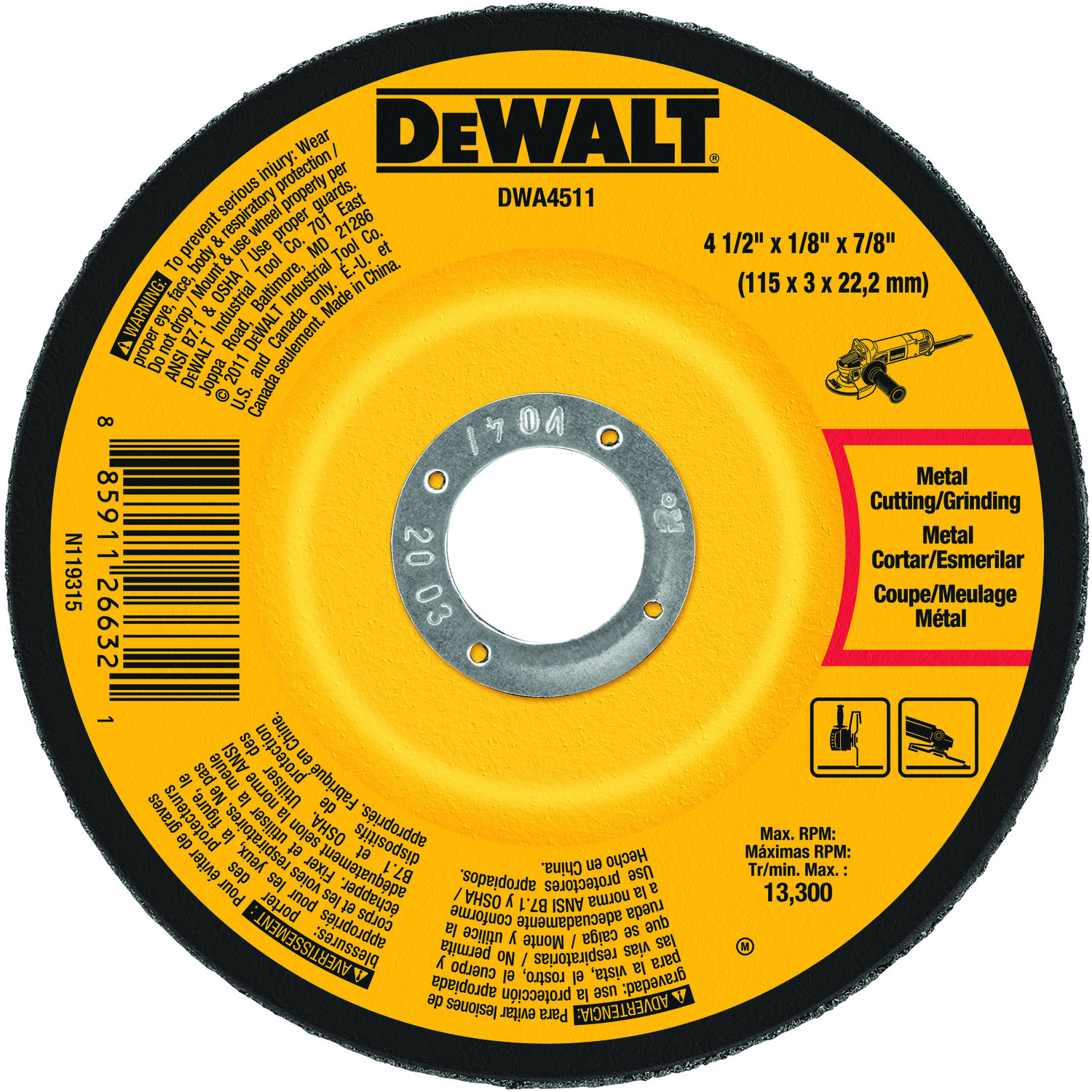 DeWALT® DWA4511 Depressed Center Wheel, 4-1/2 in Dia x 1/8 in THK, 7/8 in Center Hole, A24N Grit, Aluminum Oxide Abrasive