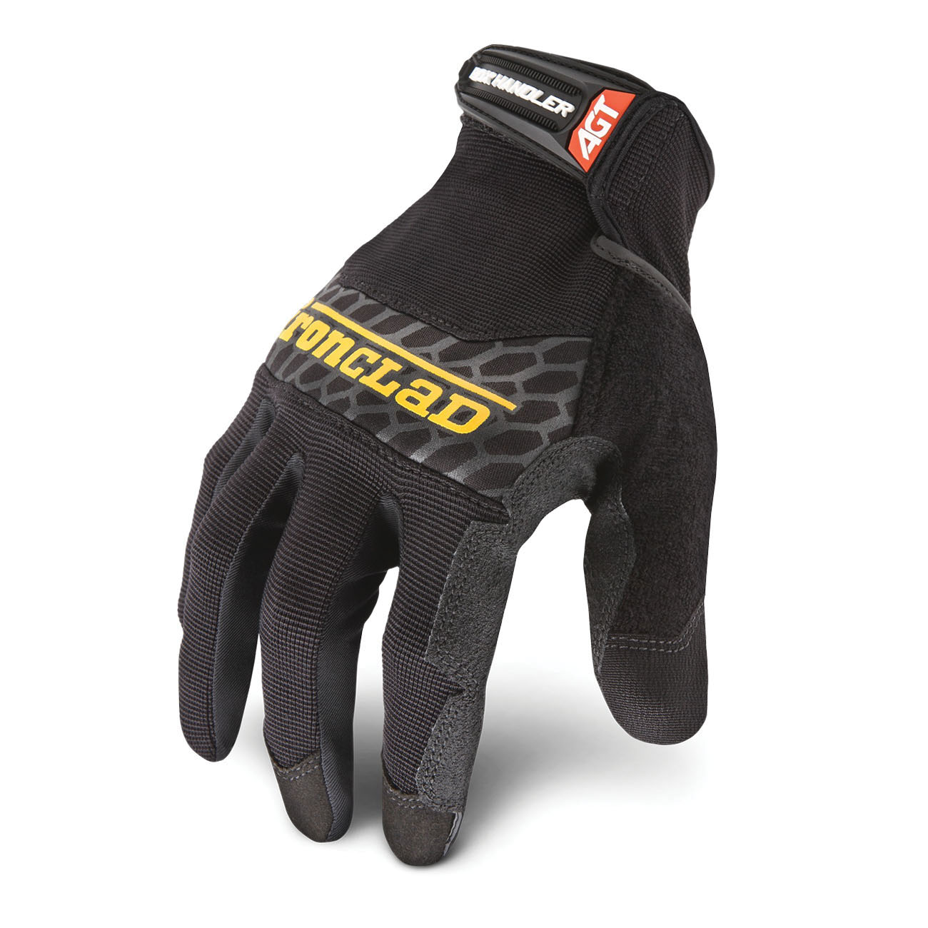ironClad® Box Handler® BHG-04-L Unlined Ultimate Grip General Purpose Gloves, Mechanics, Full Finger/Wing Thumb Style, L, Silicone Palm, Black, Hybrid Cuff, Resists: Abrasion