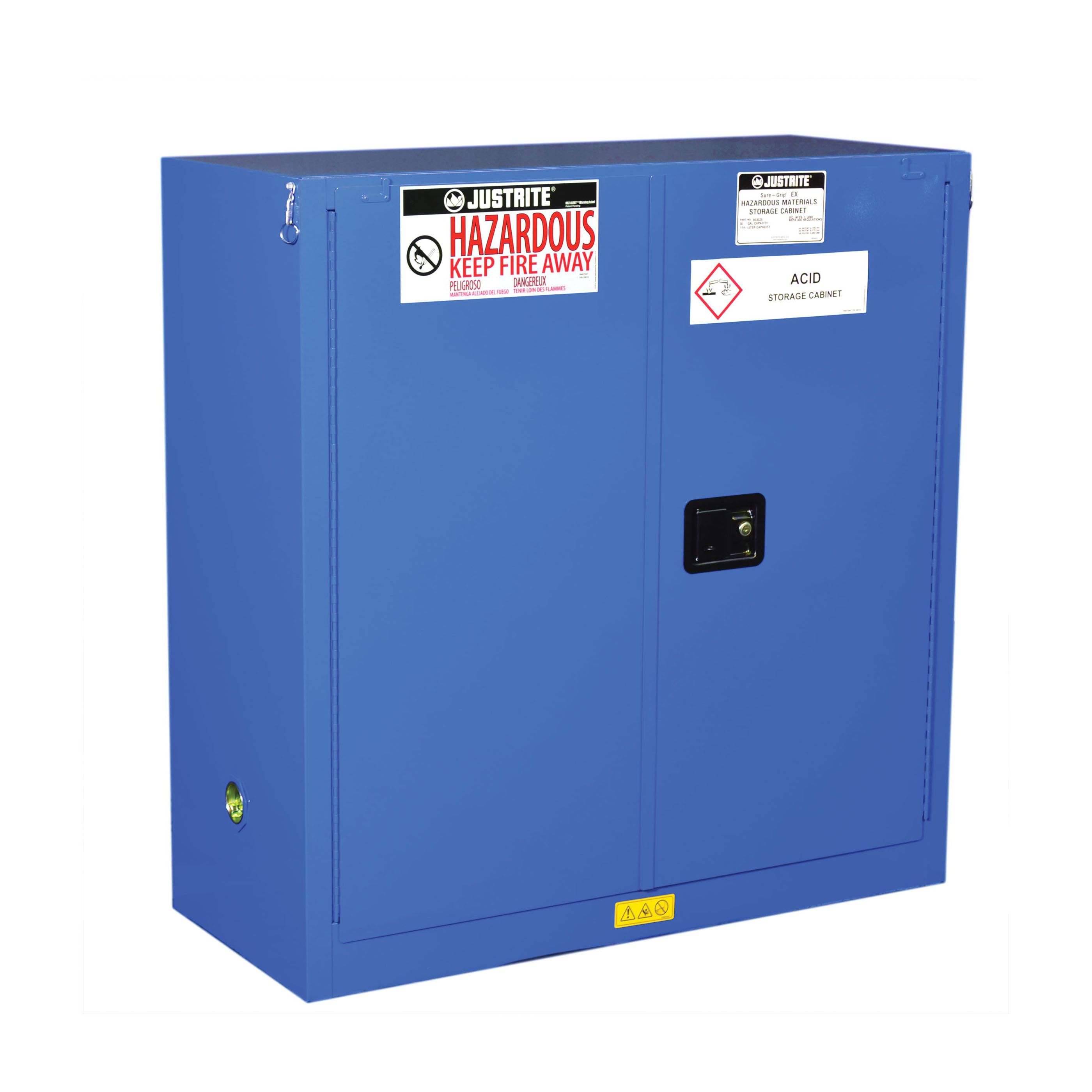 Justrite® 8630282 ChemCor® Classic Corrosive Safety Cabinet, 30 gal Capacity, U-Loc™ Handle, 44 in H x 43 in W x 18 in D, Self-Close Door, 2 Doors, 1 Shelve, 18 ga Cold Rolled Steel, Royal Blue