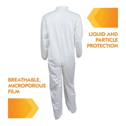 KleenGuard™ 44317 A40 Liquid Particle Protection Disposable Coverall, 4XL, White, Microporous Film Laminate, 31 in Chest, 41-1/2 in L Inseam