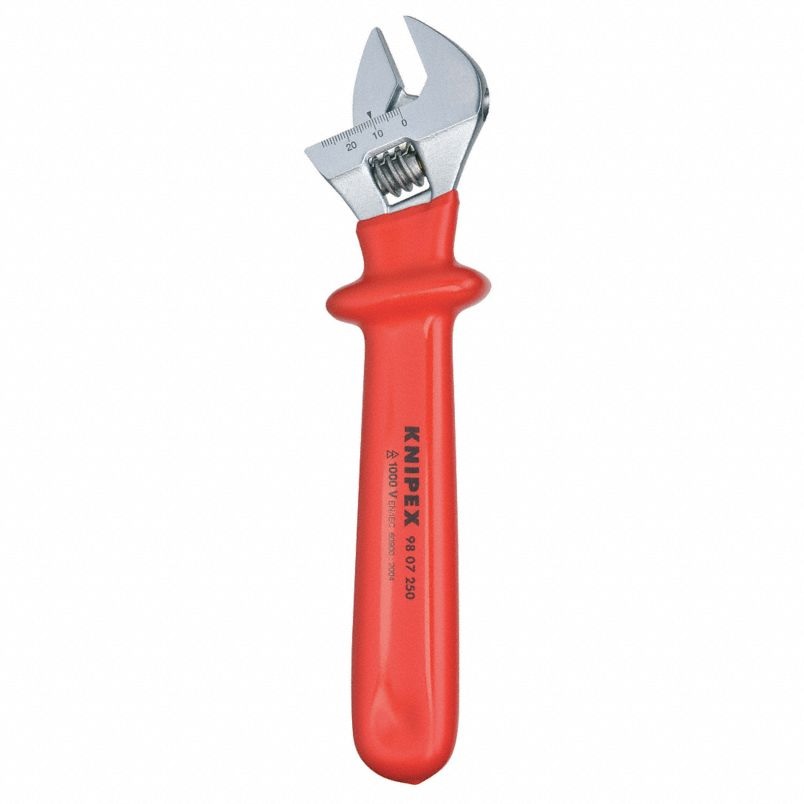Knipex® 98 07 250 Insulated Adjustable Wrench, 10 in, Jaw Capacity 1-1/8 in