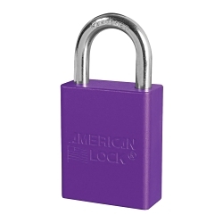 American Lock® A1105KAMKPRP Safety Padlock, Alike/Master Key, Purple, Anodized Aluminum Body, 1/4 in Dia x 1 in H x 25/32 in W Polished Chrome Boron Alloy Steel Shackle, Conductive Conductivity