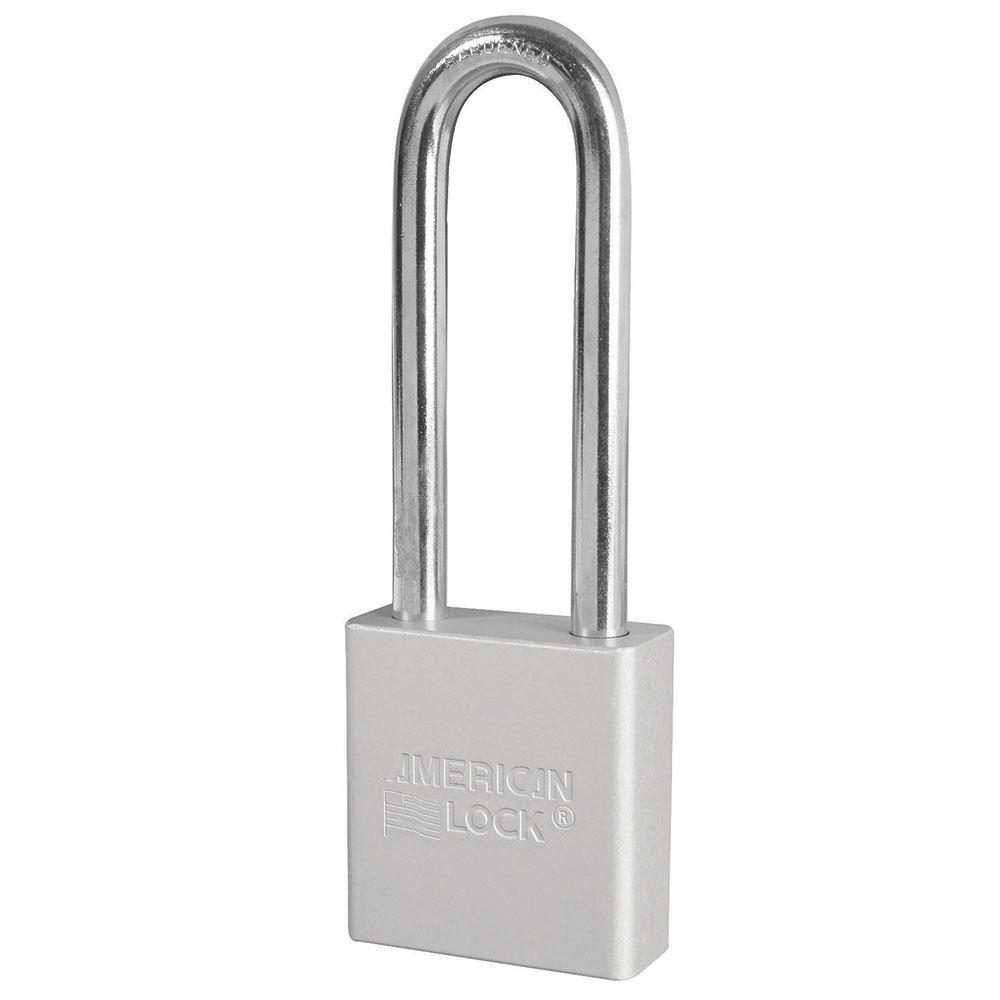 American Lock® A1207KACLR Solid Body Padlock, Alike Key, Solid Aluminum Body, 5/16 in Dia Shackle, Silver, 5-Pin APTC12 Tumbler Cylindrical Locking Mechanism