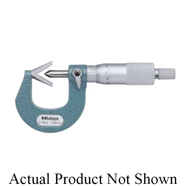 Mitutoyo 114-101 Metric V-Anvil Micrometer With Groove, 1 to 15 mm, Graduations: 0.01 mm, Carbide Tip