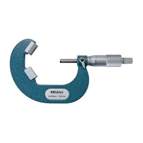 Mitutoyo 114-123 Metric V-Anvil Micrometer, 45 to 65 mm, Graduations: 0.01 mm, Carbide Tip