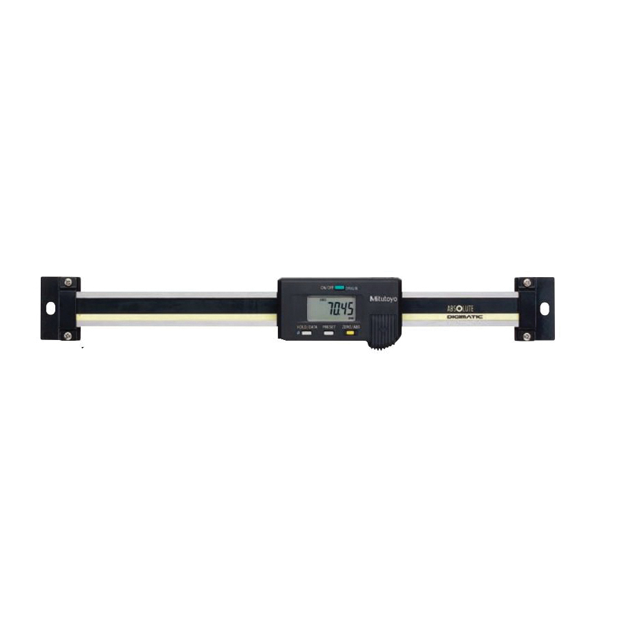 • The ORIGIN key allows setting of an absolute zero point to be used as reference in subsequent measurements - once set, the abs digimatic scale unit is ready to show its true position whenever turned on rather than 0.00 in as with standard models• The zero/ABS key allows the display to be zero set at any slider position along the beam for incremental comparison measurements• This key will also allow return to the absolute coordinate with a display of the true position from the origin point• No rack, no pinion, no glass scale• Digimatic scale unit is safely embedded in the hardened stainless steel blade• Horizontal or vertical face according to the scale mounting direction• All units come with two mounting brackets, each located at either end of the scale• Special type that is provided with diameter displaying function is available for lathes• Absolute scale technology prevents overspeed errors• The coordinate origin (ABS point) can be set to desired position and stored - A previously set ABS point is retained even when the power is off, so the current true position is displayed immediately after power on• Small and light• Long battery life• SPC data output• Equipped with double reading function