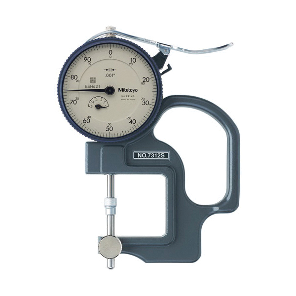 Mitutoyo 7312S 7 Series Imperial Reverse Anvil Dial Thickness Gage, 0 to 0.4 in, Graduations: 0.001 in, 1.2 in D Throat, Steel