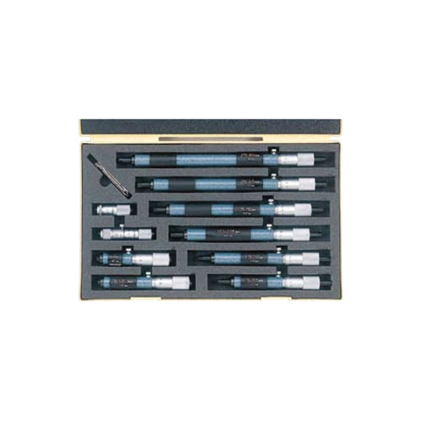 Mitutoyo 133-902 Metric Single Rod Tubular Inside Micrometer Set With Locking Clamp, 10 Pieces, 50 to 300 mm Measuring Range 0.01 mm Graduations, 8 mm Resolution, Carbide Tip