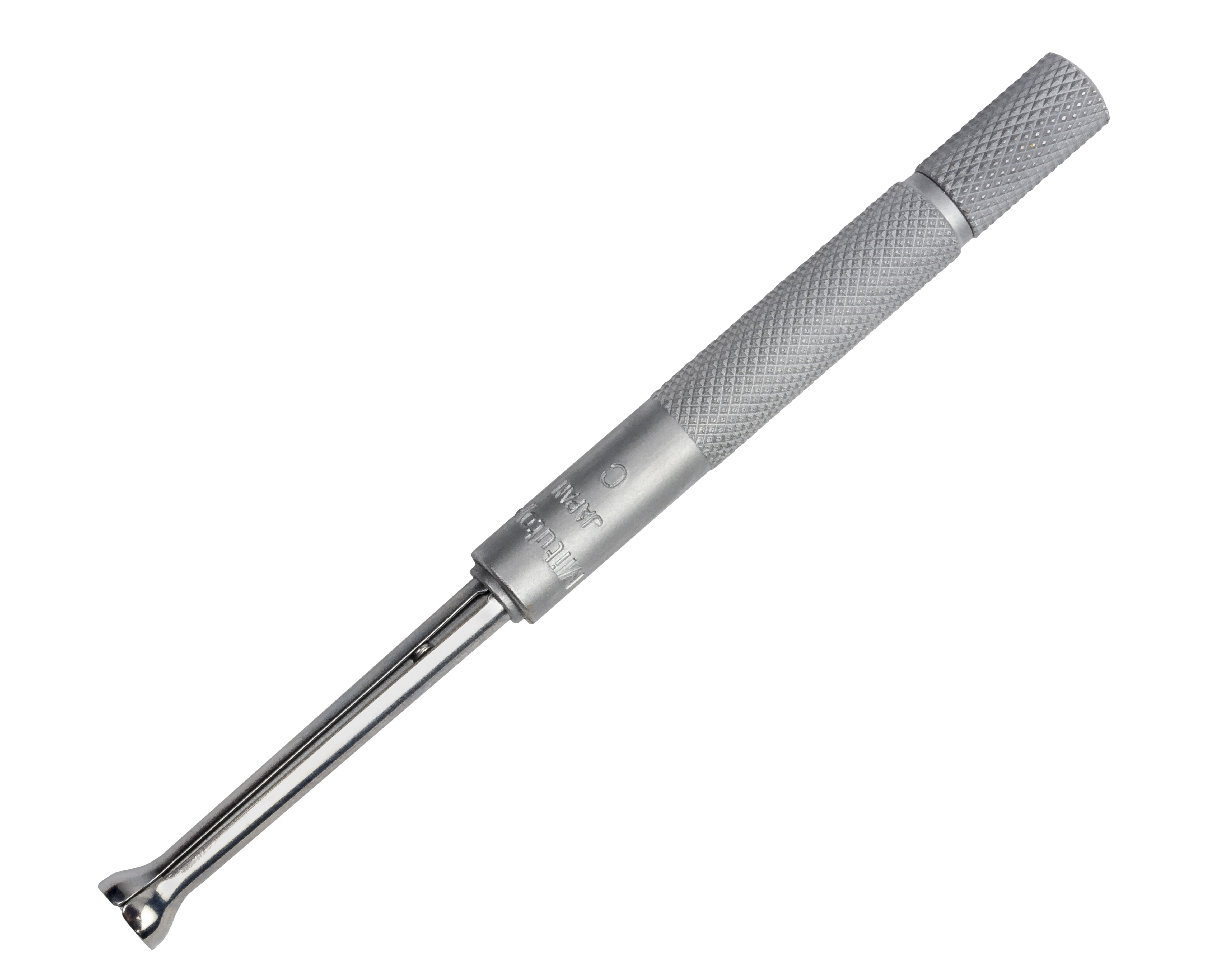 • • Used with an outside micrometer for measuring inside diameter of bores