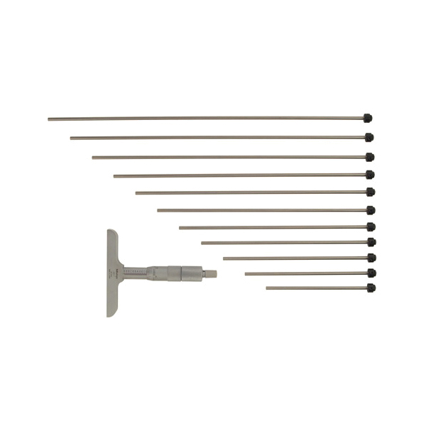Mitutoyo 129-150 Imperial Interchangeable Rod Depth Micrometer, 0 to 12 in, Graduations: 0.001 in, Hardened Steel, Satin Chrome
