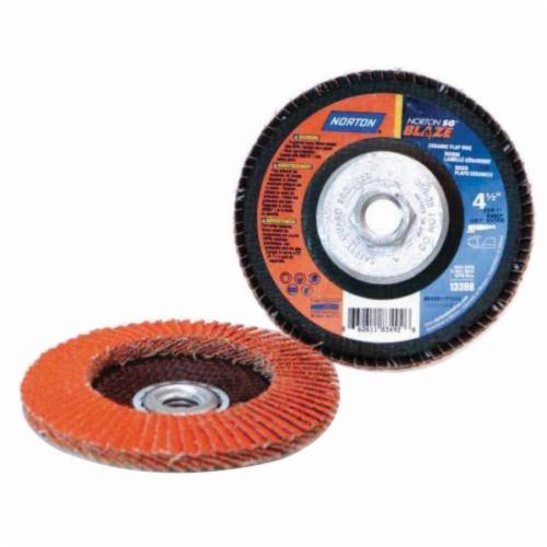 Norton® Blaze® 66261183490 R980 Standard Density Coated Abrasive Flap Disc, 4-1/2 in Dia, 36 Grit, Extra Coarse Grade, Ceramic Alumina Abrasive, Type 29/Conical Disc