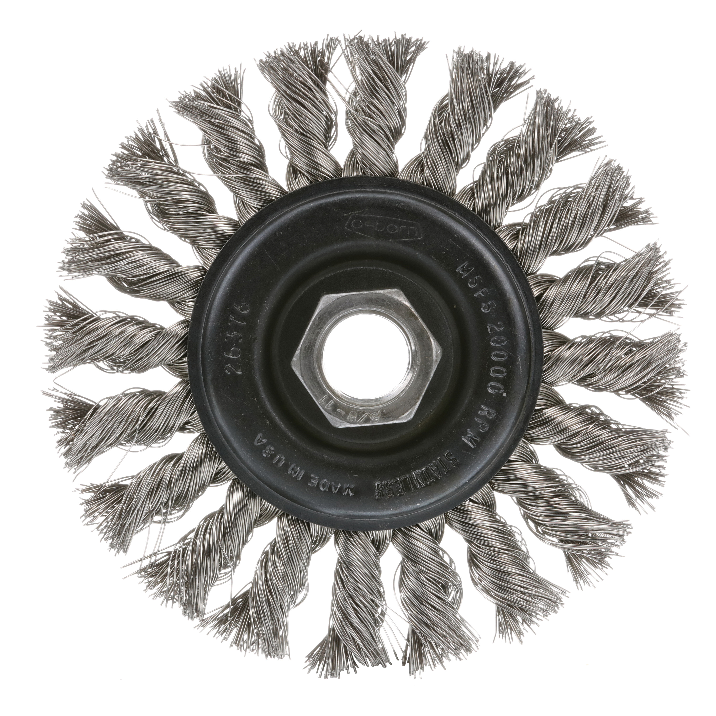 Osborn 26376 High Speed Small Grinder Wheel Brush With Steel Nut, 4 in Dia Brush, 0.014 in Dia Standard/Twist Knot Filament/Wire, 5/8-11 Arbor Hole