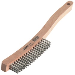 Osborn 0008300700 Curved Handle Wire Scratch Brush, Stainless Steel, 13-3/4 in OAL, Bristle Length: 1-1/8 in, Face Size: 6 in L x 15/16 in W