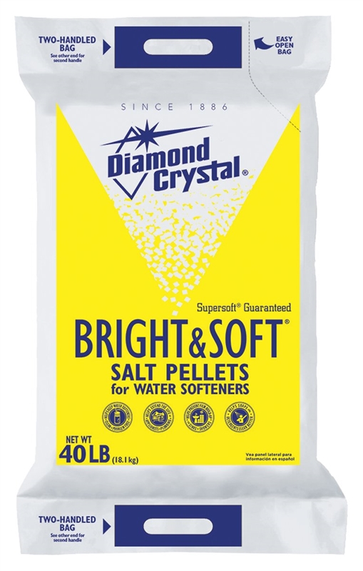 Diamond Crystal® 100012407 Bright & Soft Salt Pellets, 40 lb Bag, Crystalline Solid