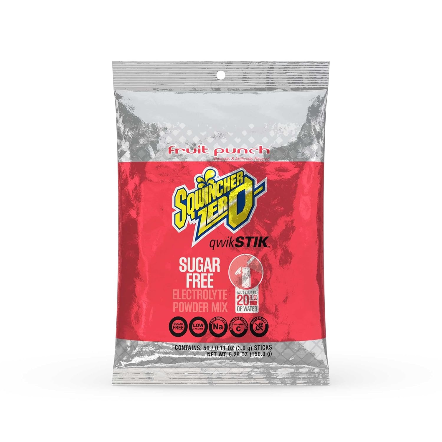 Sqwincher® 060102-FP Qwik Stik™ Zero Sugar Free Sports Drink Mix, 0.11 oz Pack, 20 oz Yield, Powder Form, Fruit Punch