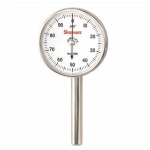 Starrett® 196B1 196 Series Universal Back Plunger Dial Indicator, 0.2 in, 0 to 100 Dial Reading, 0.001 in, 1.45 in Dial