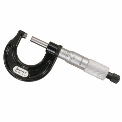 Starrett® T436.1XRL-1 Mechanical Outside Micrometer, 0 to 1 in, Graduations: 0.0001 in, Carbide Tip, Satin Chrome