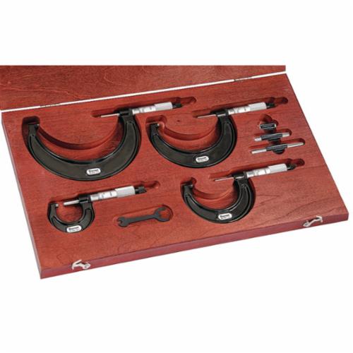 Starrett® S436.1BXRLZ Outside Micrometer Set, 4 Pieces, 0 to 4 in Range 0.0001 in Graduations, Carbide Tip