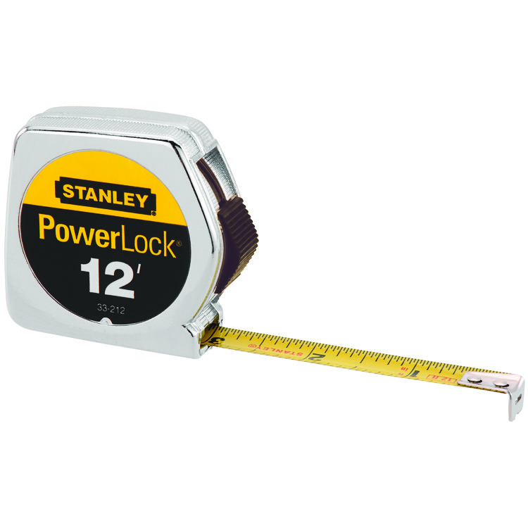 • • This 12 in PowerLock tape measure has a die cast metal case and holds its own against rough handling
