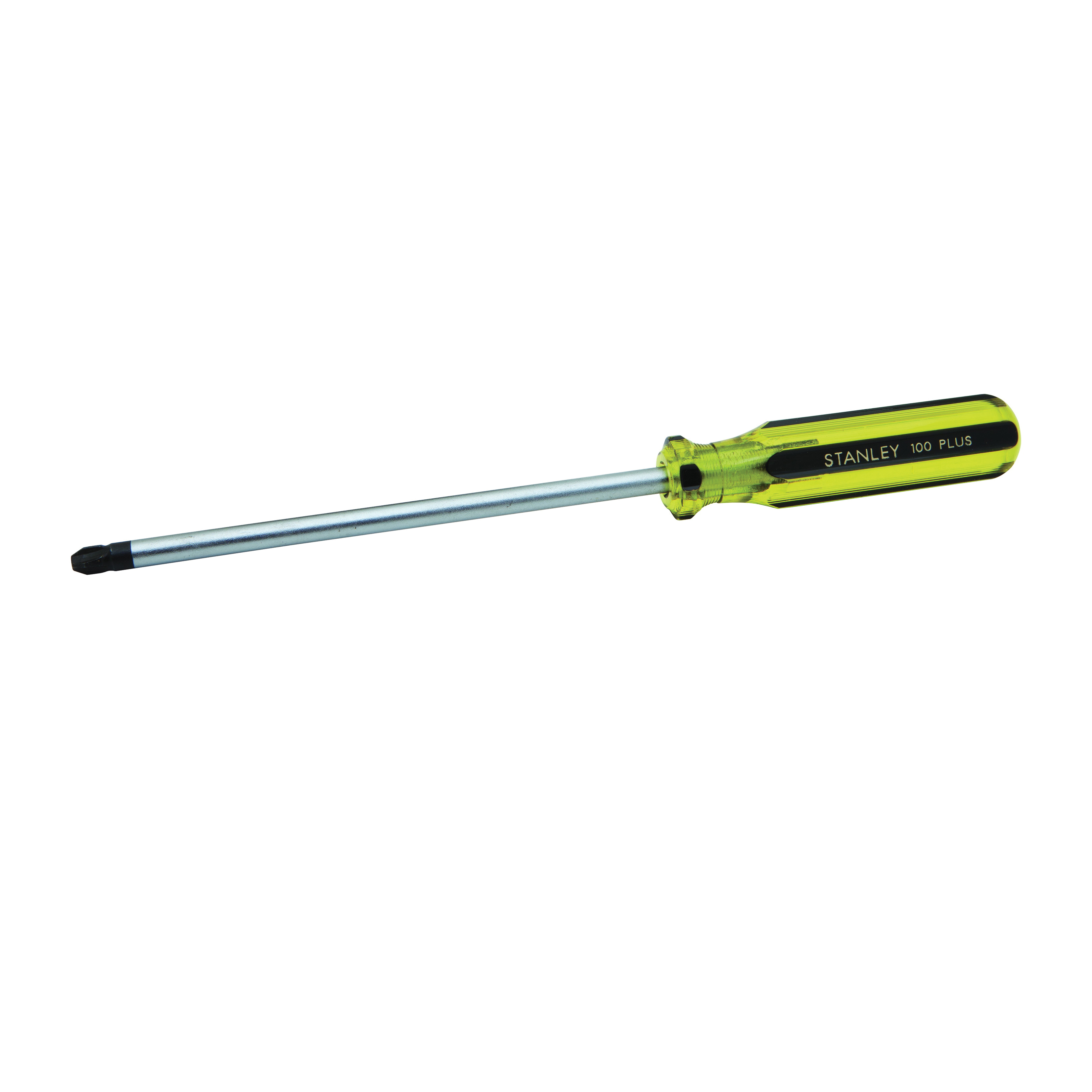Stanley® Contractor Grade™ 100 PLUS® 64-104 Standard Screwdriver, #4 Phillips® Point, Alloy Steel Shank, 13-3/4 in OAL, Acetate Handle, Black Oxide/Polished Chrome