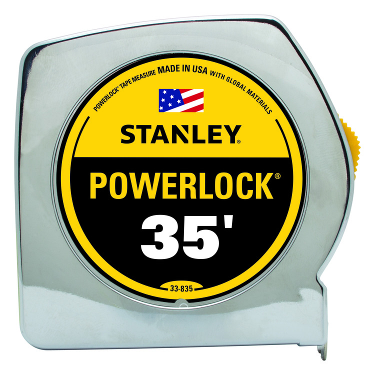 Stanley® PowerLock® 33-835 Classic Tape Rule With Belt Clip, 35 ft L x 1 in W Blade, Steel Blade