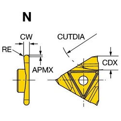 Sandvik Coromant 5737298 CoroCut® 3 Profiling Insert, ANSI Code: N123U3-0100-RS 1125, N123U3-RS Insert, U3 Insert, Material Grade: K, M, N, P, S, 0.0196 in Max Depth of Cut, Manufacturer's Grade: 1125