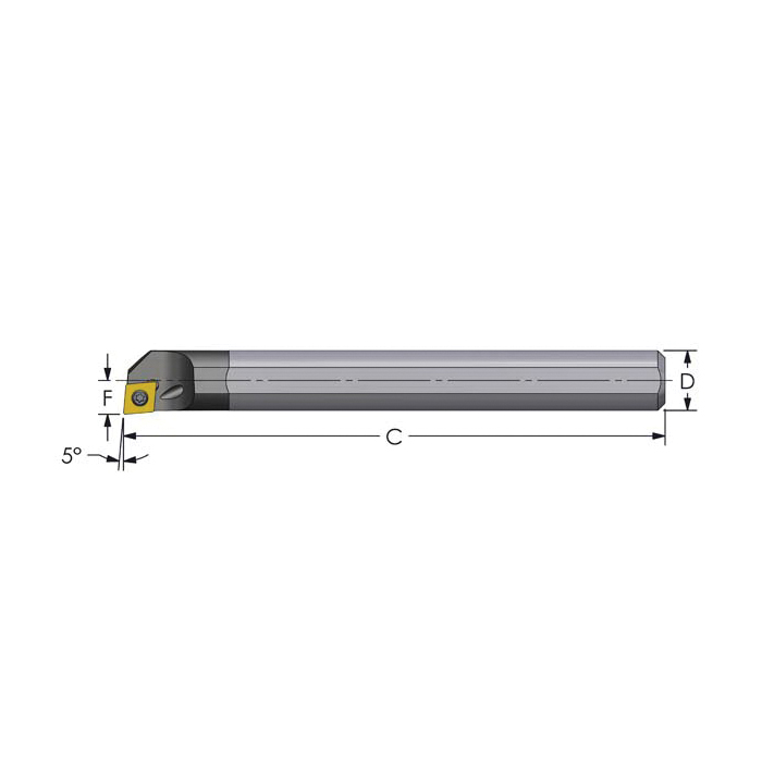 Ultra-Dex E08R SCLCR2 Positive Indexable Boring Bar, SCLCR Toolholder, 0.6 in Dia Min Bore, Right Hand of Holder, 8 in OAL