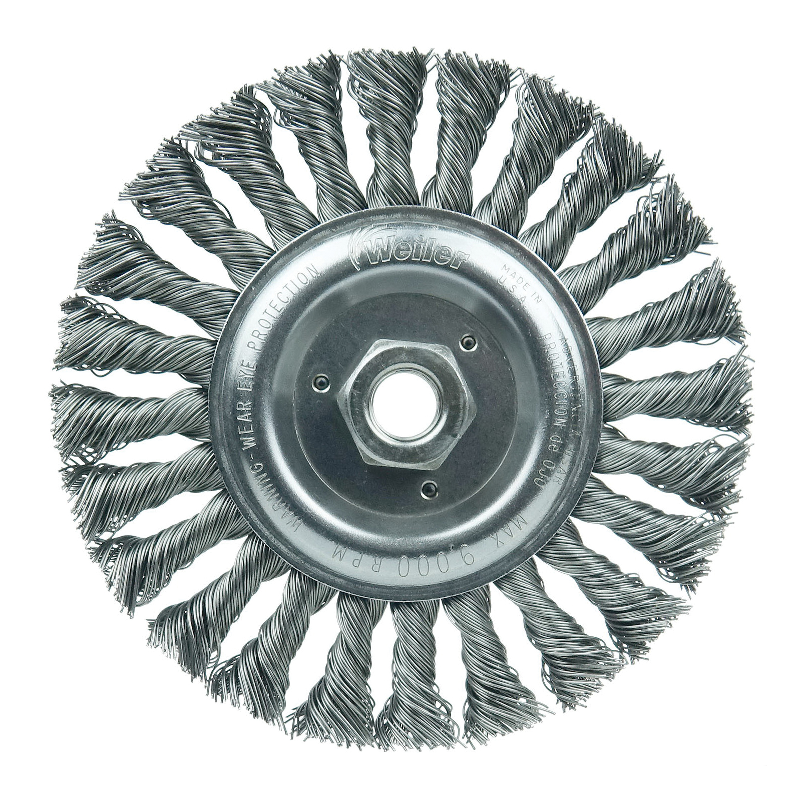 Weiler® 08106 Wheel Brush With Nut, 6 in Dia Brush, 1/2 in W Face, 0.023 in Dia Standard/Twist Knot Filament/Wire, 5/8-11 Arbor Hole